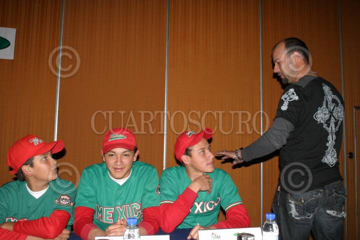 MÉXICO, D.F. 12FEBRERO2007.- El beisbolista Esteban Loaiza saluda a niños seleccionados mexicanos durante una conferencia de prensa que ofrecio la Federación Mexicana de Beisbol. FOTO: SAUL LOPEZ/CUARTOSCURO.COM