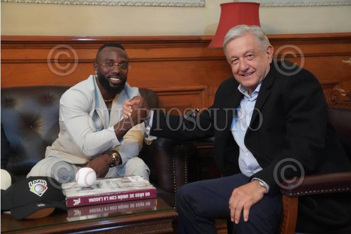 CIUDAD DE MÉXICO, 06NOVIEMBRE2023.- El beisbolista cubano-mexicano Randy Arozarena se reunió con Andrés Manuel López Obrador, Presidente de México, en Palacio Nacional. FOTO: PRESIDENCIA/CUARTOSCURO.COM