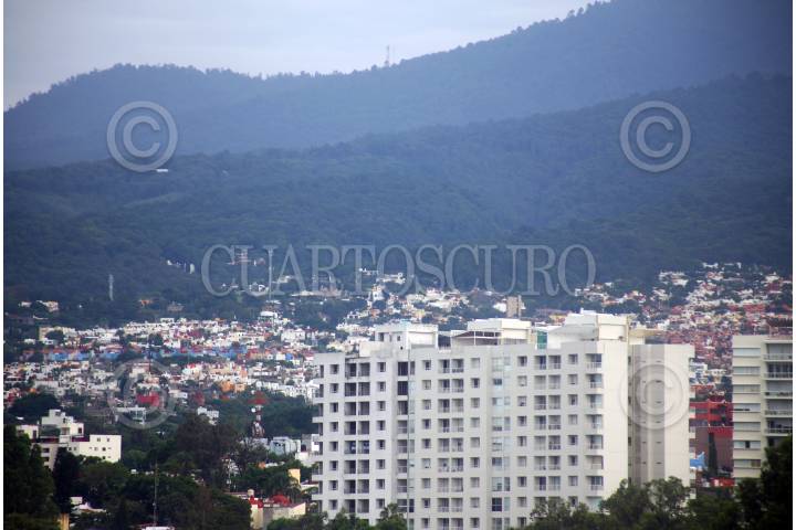 CUERNAVACA, MORELOS, 03JULIO2019. Panorámica del poniente de la capital. Se observa en primer plano los edificios Altitude, en uno de esos departamentos el 16 de diciembre del año 2009 fue abatido por elementos de la Marina el narcotraficante Arturo Beltrán Leyva. Hace un par de semanas, el gobierno federal ofertó este inmueble en una subasta sin que haya surgido algún comprador. FOTO: MARGARITO PÉREZ RETANA /CUARTOSCURO.COM