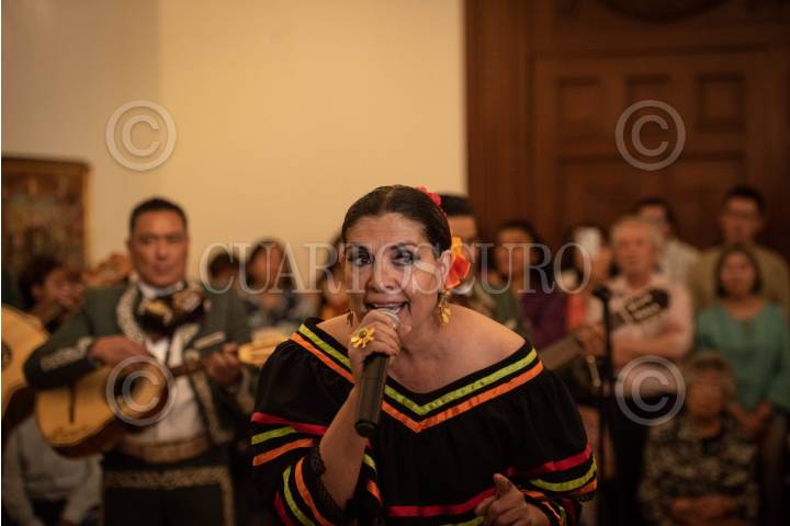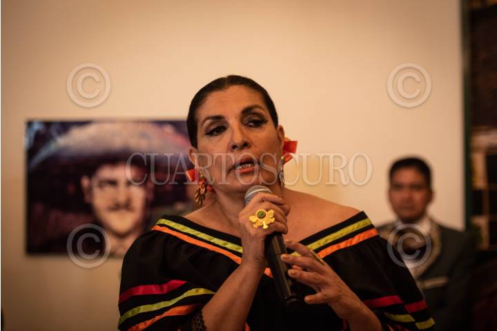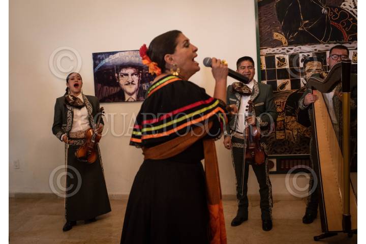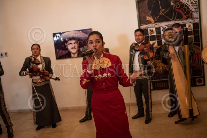 CIUDAD DE MÉXICO, 10MARZO2024.- Se despidió, en el Complejo Cultural Los Pinos, la exposición "Que te vaya bonito", homenaje al cantautor mexicano, José Alfredo Jiménez, la cual exhibió fotografías y artículos personales de quien en vida entonara la canción de la cual la exhibición tomó el nombre. En el evento estuvieron presentes Paloma Jiménez, hija del cantautor, la cantante María Elena Leal, hija de Lola Beltrán, así como la agrupación musical "Mariachis Los Gavilanes". FOTO: PEDRO ANZA /CUARTOSCURO.COM