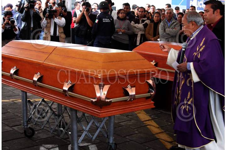 PUEBLA, PUEBLA, 28OCTUBRE2009.- Se rindió un homenaje luctuoso a los elementos de la Policía Municipal que perdieran la vida el día de ayer. Medios locales manejan que la presunta víctima de una persecución, que en principio declaró ser un simple comerciante, admitió finalmente que se dedicaba a la venta de estupefacientes. En este sentido el gobierno estatal solicitó formalmente la intervención del Ejército Mexicano y de la Policía Federal (PF), para que realizen patrullajes en las calles de la ciudad de Puebla. Esta mañana en la residencia oficial del ejecutivo del Estado Casa Puebla, se realizó una reunión encabezada por el mismo mandatario y a la que asistieron integrantes del gabinete de seguridad, así como representantes de la Procuraduría General de la República (PGR), de la XXV Zona Militar y de la presidencia municipal de Puebla. Uno de los acuerdos del cónclave fue destinar más recursos para ampliar el arsenal de los cuerpos de seguridad pública y la compra de más chalecos antibalas. FOTO: FRANCO/CUARTOSCURO.COM