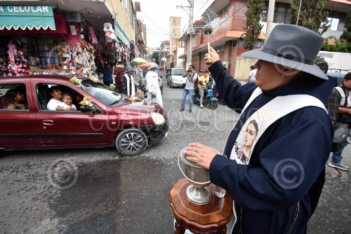 Previo a la celebración de la Asunción de María, que dicta la tradición católica, se llevó a cabo este mediodía la bendición de automóviles y unidades de transporte público en el centro de Chilpancingo.