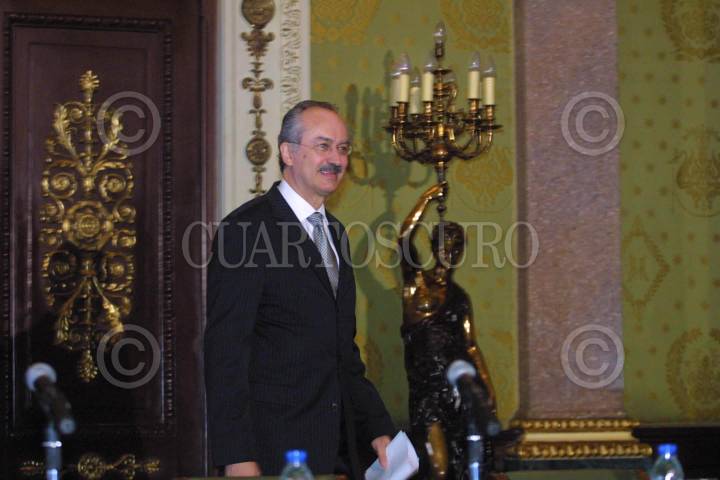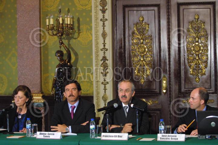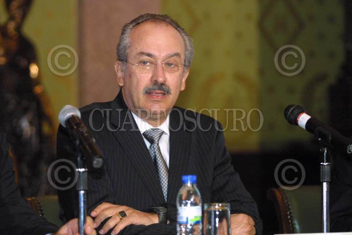 MÈXICO,D.F.12MAYO2006..- Francisco Gil Dìaz ofreciò conferencia de prensa èsta mañana para hablar sobre la colocaciòn de un bono de desastres por terremoto que beneficiarìa a Mèxico en caso de que se diera. FOTO: Miguèl Arellano/CUARTOSCURO.COM