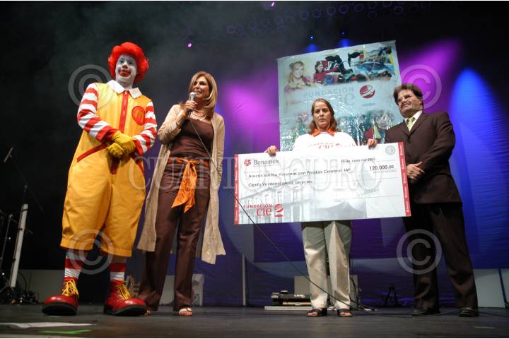 MEXICO, D.F. 15JUNIO2005.- Antes del concierto de Aleks Sintek en el teatro metropolitan la fundación CIE, Mcdonalds y Banamex entregaron un cheque por 120 mil pesos a la fundación APAC que atiende a niños con sindrome de down. FOTO: Miguel Dimayuga/CUARTOSCURO.COM