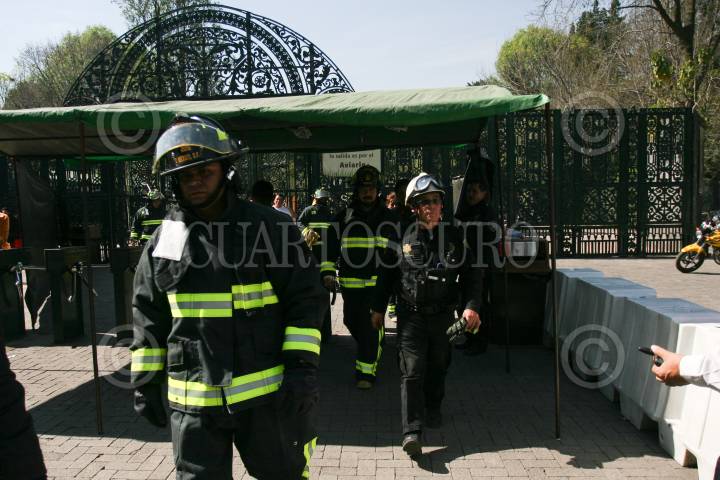 MÉXICO D.F. 07ENERO2009.- Integrantes del Cuerpo de Bomberos acudieron al Zoológico de Chapultepec a rescatar a un hombre que intento suicidarse arrojándose a la área donde se encontraba un tigre de bengala. FOTO: GUILLERMO PEREA/CUARTOSCURO.COM