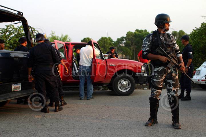 VILLAHERMOSA, TABASCO, 04JUNIO2005.- Como medida de suma preventiva en diferentes colonias de la capital tabasqueña, se implemento el operativo de vigilancia y reacción inmedianta a cargo de la Secretaría de Seguridad Pública, denominado "Bengala", donde los uniformados atacan de manera directa los lugares conclictivos para salvaguardar el orden ciudadano. FOTO: Marco Polo Guzmán/CUARTOSCURO.COM