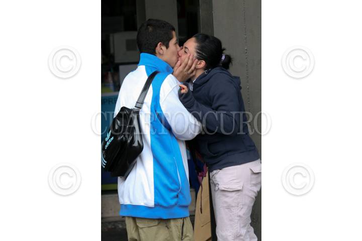 MÉXICO D.F., 16ENERO2009.- En la ciudad de Guanajuato fue aprobada la reforma al Bando de Policía y Buen Gobierno que castiga con 36 horas de cárcel o multas hasta de 30 salarios mínimos (Más de $1500.00) a quien se bese (besos Olímpicos) en la vía publica, la reforma fue propuesta por al Alcalde de extracción panista, Eduardo Romero Hicks. En la imagen una pareja de jóvenes se besan en la vía publica. FOTO: GUILLERMO PEREA /CUARTOSCURO.COM