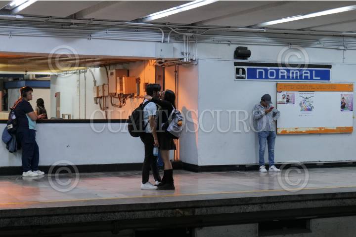 CIUDAD DE MÉXICO, 18JUNIO2024.- Una pareja se besa en el anden del Metro Normal. FOTO: ALICE MORITZ/CUARTOSCURO.COM