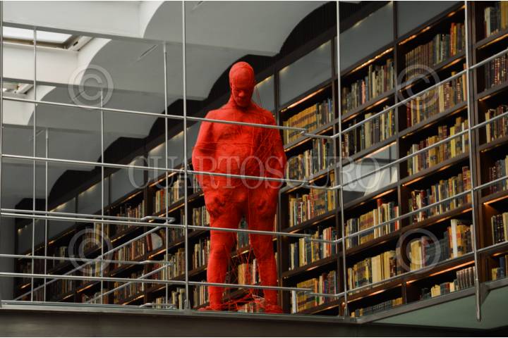 CIUDAD DE MÉXICO, 19ABRIL2016.- Escultura instalada en una de las aulas de la Biblioteca México que representan el acto de observación dentro del proceso de creación artística. FOTO: GALO CAÑAS /CUARTOSCURO.COM
