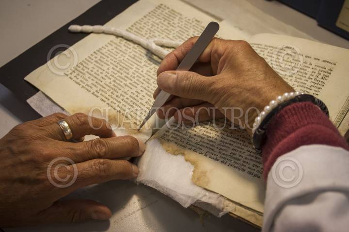 CIUDAD DE MÉXICO, 09MARZO2017.- El valor de los libros no sólo está en las letras e ideas que contienen, también en los materiales y la forma como fueron elaborados hay mucha información que nos ayuda a comprender la época y el lugar en el que fueron concebidos, así como la forma de pensar de sus creadores. Por ello, el Departamento de Conservación y Restauración de la Biblioteca Nacional de México, institución que celebra este año su 150 aniversario, se encarga de cuidar el estado físico en el que se encuentra todo el acervo de la institución, compuesto por el Fondo Reservado y el Fondo Contemporáneo. Libros con varios siglos de antigüedad, manuscritos y fotografías son algunos de los materiales en los que a diario trabaja este departamento, dirigido por la maestra Adriana Gómez Llorente. Páginas deterioradas por ataques de antaño de insectos o microoganismos son restauradas para devolver su funcionalidad. Los libros antiguos son más duraderos que los modernos, debido a los materiales y técnicas con las que fueron hechos, explica Gómez Llorente, quien tiene a su cargo un equipo de nueve personas. El proceso de restauración, dependiendo del grado de deterioro puede llevar mucho tiempo de trabajo,, pero el objetivo principal es devolver la unidad y funcionalidad al libro alterando sus características originales lo menos posible. La Biblioteca Nacional de México, creada por el presidente Benito Juárez en 1867 y a la que acudieron 45 mil usuarios el año pasado, nació con el objetivo de preservar el acervo bibliográfico de México, el cual es muy importante para el desarrollo cultural e intelectual del país. FOTO: ISAAC ESQUIVEL /CUARTOSCURO.COM