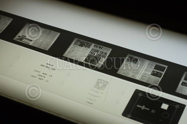 CIUDAD DE MÉXICO, 09MARZO2017.- Un escáner compuesto de un atril específico para libros encuadernados en forma de “V” donde cada plancha se encuentra en un ángulo de 120 grados, mientras dos cámaras fotográficas digitales realizan capturas de cada una de sus páginas, son una de las herramientas con las que trabajan a diario en la Unidad de Microfilmación y Fotografía de la Hemeroteca Nacional de México. Aquí digitalizan libros y textos para evitar su deterioro. Otra cámara digital sobre una cama plana, se utiliza con fotografías o algunos otros documentos. Sin embargo, toda la información digital tiene un periodo de vida incierto, explica el ingeniero Ricardo Jiménez Rivera, es por esto que la película fotográfica sigue siendo utilizada para conservar en microfilm muchos de los documentos que tiene a su resguardo la Hemeroteca (que se estima perdurará unos quinientos años, aunado a la calidad de imagen, la cual aún no es superada por la tecnología digital). La Hemeroteca busca preservar y ofrecer para consulta materiales hemerográficos editados en el país, esenciales para el desarrollo de la nación, por lo que es indispensable pensar en mejores métodos tecnológicos para cumplir esa misión. FOTO: ISAAC ESQUIVEL /CUARTOSCURO.COM