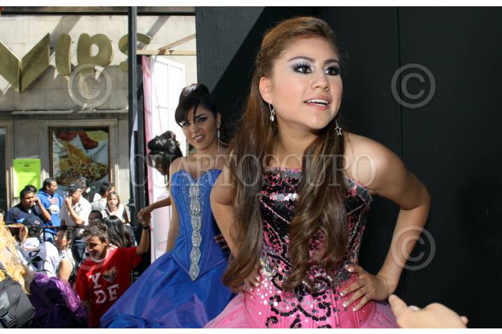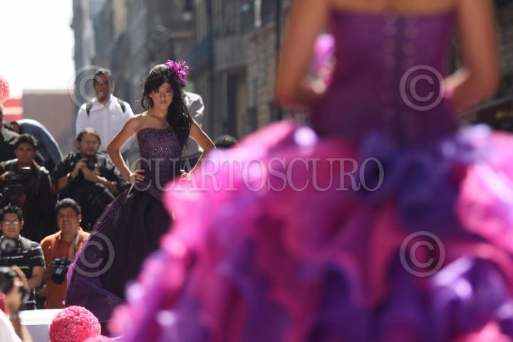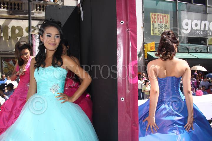 MÉXICO, D.F., 23MARZO2010.- Decenas de Quinceañeras se dieron cita en la esquina de Madero donde realizaron el desfile de Modas Lagunilla 2010 Quinceañeras del Bicentenario. FOTO: SÁSHENKA GUTIÉRREZ/CUARTOSCURO.COM