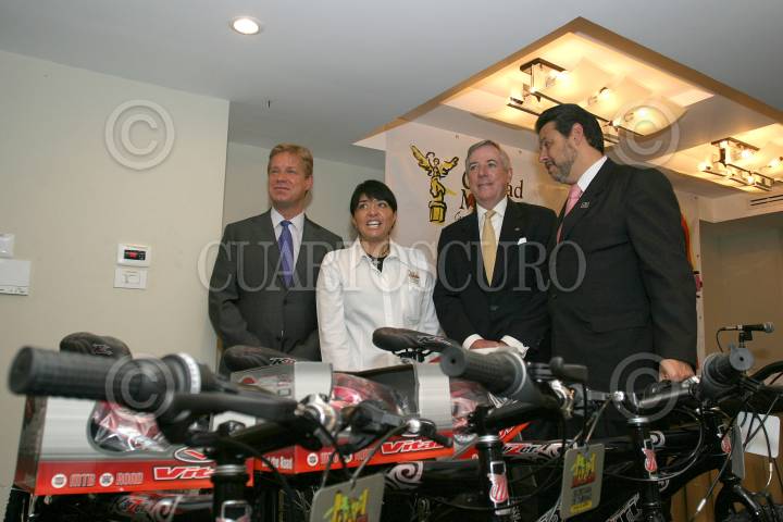 MEXICO,D.F. 01OCTUBRE2007.- Alejandra Barrales, secretaria local de Turismo, Kai Lamle,director gerente de GMMR, y Gonzálo Brockman, presidente de la Asociación de hoteles de la ciudad de México durante el evento de Donación de bicicletas para el programa"Recorridos turisticos en bicicleta".FOTO:ROCIO ORTIZ/CUARTOSCURO.COM