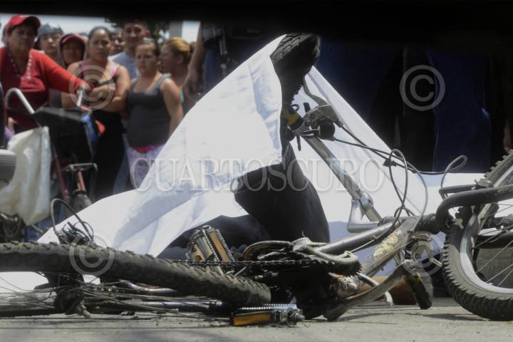 NEZAHUALCOYOTL, ESTADO DE MÉXICO, 23MAYO2013.- Un Hombre de aproximadamente 50 años, pierde la vida atropellado por un camión de carga el cual se dio a la fuga dejando al hombre que viajaba en su bicicleta sin vida, en calle Lago Frio y Av. Aeropuerto colonia Ciudad Lago municipio de Nezahualcoyotl. FOTO: LUIS CARBAYO /CUARTOSCURO.COM
