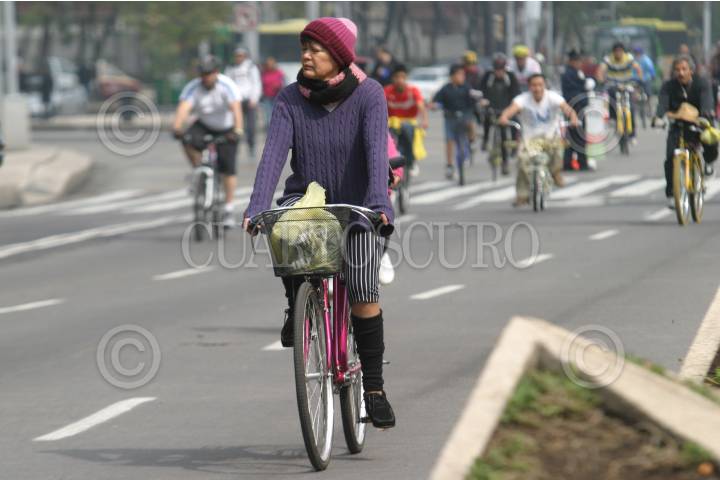 MÉXICO, D.F., 10ENERO2010.- Capitalinos acudieron al paseo ciclista bien abrigados debido al intenso frío que ha provocado la entrada del frente frío número 22. FOTO: RODOLFO ANGULO/CUARTOSCURO.COM
