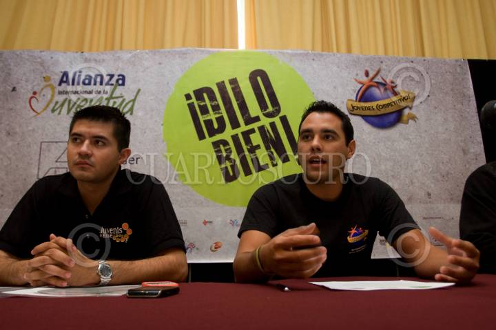 MÉXICO, D.F., 19AGOSTO2010.- Miguel Ángel Ruiz Martínez y Guillermo Almazán Smith, integrantes de Alianza Internacional de la Juventud dieron a conocer lo que será el foro alternativo “Dilo Bien” que se realizara durante el “Encuentro Juvenil Internacional” que se realizara en Guanajuato el 22 y 23 de Agosto del presente año. FOTO: GUILLERMO PEREA/CUARTOSCURO.COM