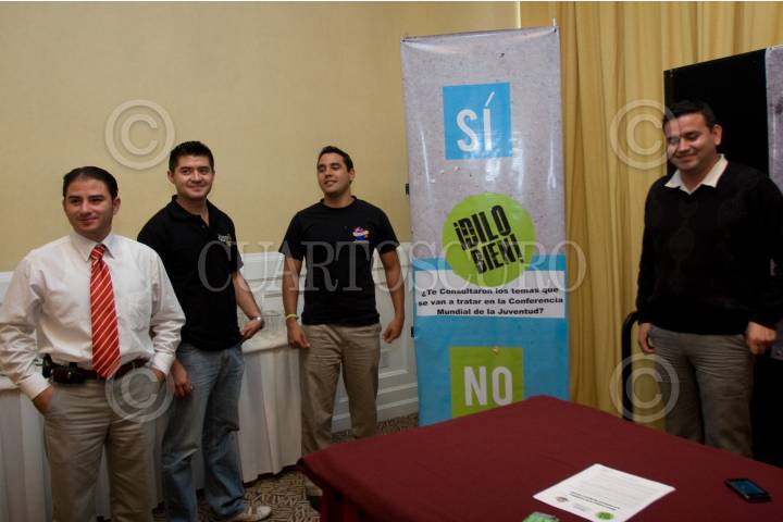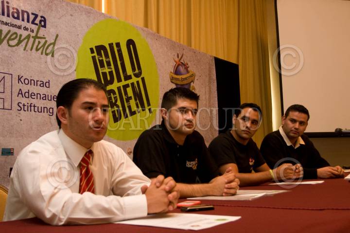 MÉXICO, D.F., 19AGOSTO2010.- Rafael Becerra González, Miguel Ángel Ruiz Martínez, Guillermo Almazán Smith y Rafael Beltrán Bautista, integrantes de Alianza Internacional de la Juventud dieron a conocer lo que será el foro alternativo “Dilo Bien” que se realizara durante el “Encuentro Juvenil Internacional” que se realizara en Guanajuato el 22 y 23 de Agosto del presente año. FOTO: GUILLERMO PEREA/CUARTOSCURO.COM