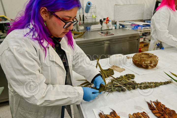 CIUDAD DE MÉXICO, 30ENERO2024.- Hace más de un milenio, en un paraje del actual estado de Coahuila, generaciones de hombres y mujeres dedicados a la caza y la recolección fueron inhumadas en una caverna conocida como la Cueva de la Candelaria; sus restos óseos y los objetos que dejaron tras de sí conforman un importante acervo que es investigado y preservado desde la Secretaría de Cultura federal y el Instituto Nacional de Antropología e Historia (INAH). En este sentido, destacan los avances del Proyecto de conservación de bienes culturales de origen orgánico de la Cueva de la Candelaria, llevado a cabo por la Coordinación Nacional de Conservación del Patrimonio Cultural (CNCPC) del INAH, desde 2013. Esta iniciativa de largo aliento emplea estudios científicos para conocer el origen biológico de las fibras usadas por los cazadores-recolectores, así como técnicas de arqueología experimental para entender el modo de tejer cestas, redes, sandalias, bolsas, cuerdas u ornamentos corporales, como collares y orejeras. FOTO: INAH/CUARTOSCURO.COM
