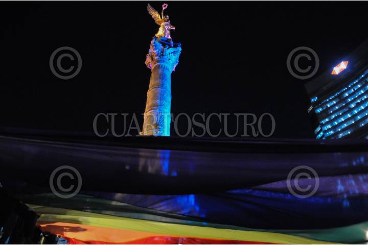 Miembros de la comunidad LGBTI marcha sobre Paseo de la Reforma.