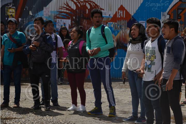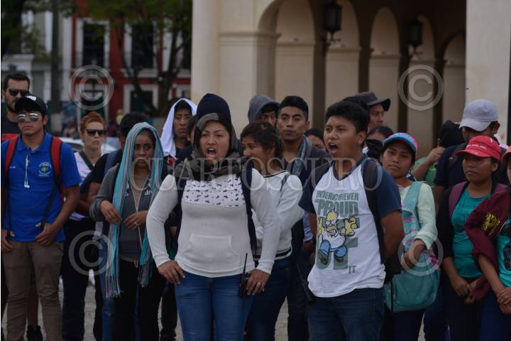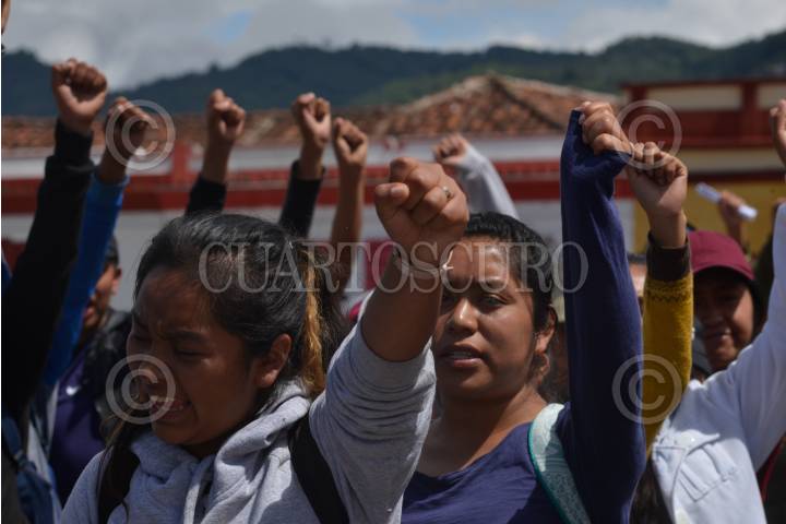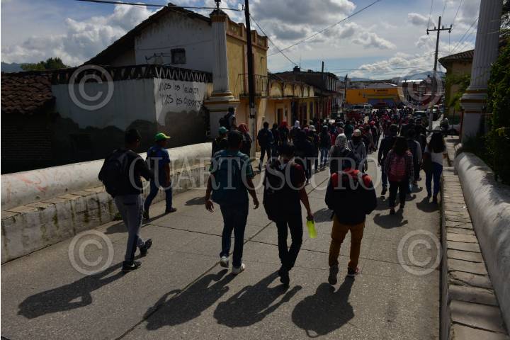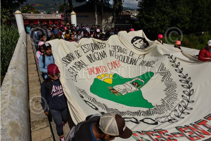 SAN CRISTOBAL DE LAS CASAS, CHIAPAS, 21AGOSTO2019.- Estudiantes de la Escuela Normal Indígena Intercultural Bilingüe Jacinto Canek, realizaron una marcha pacifica por las calles del municipio exigiendo la aparición de tres de sus compañeros, quienes dejaron de comunicarse después de la agresión que sufrieron por parte de la policía estatal y federal durante un boteo que realizaban en la caseta Chiapa de Corzo, entrada a la capital del estado. FOTO: ISABEL MATEOS /CUARTOSCURO.COM
