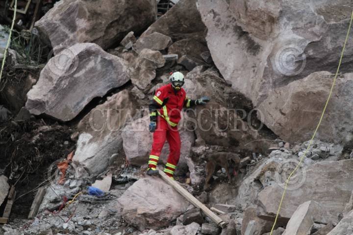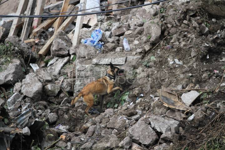 Un binomio canino olfateó la zona del desgaje en el Cerro del Chiquihuite