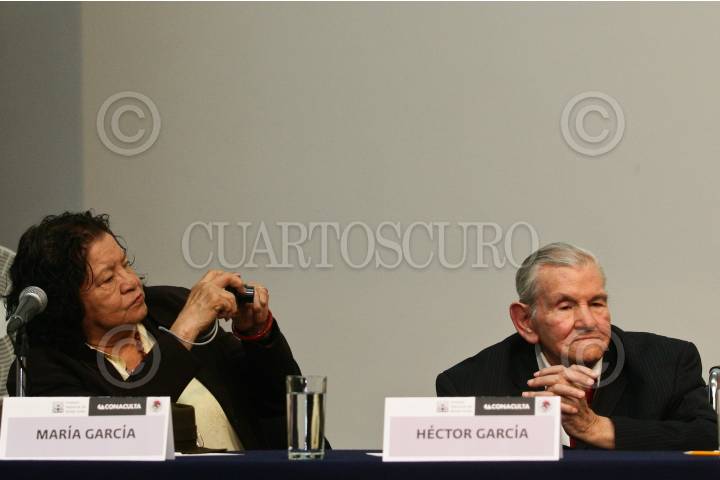 MÉXICO, D.F., 19ABRIL2009.- Amigos y familiares de los fotógrafos María y Héctor García, los acompañaron durante la presentación del libro "Pata de Perro", biografía del maestro fotógrafo, que fue presentado esta tarde en el Palacio de Bellas Artes. FOTO: ISAAC ESQUIVEL/CUARTOSCURO.COM