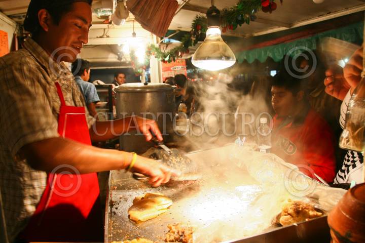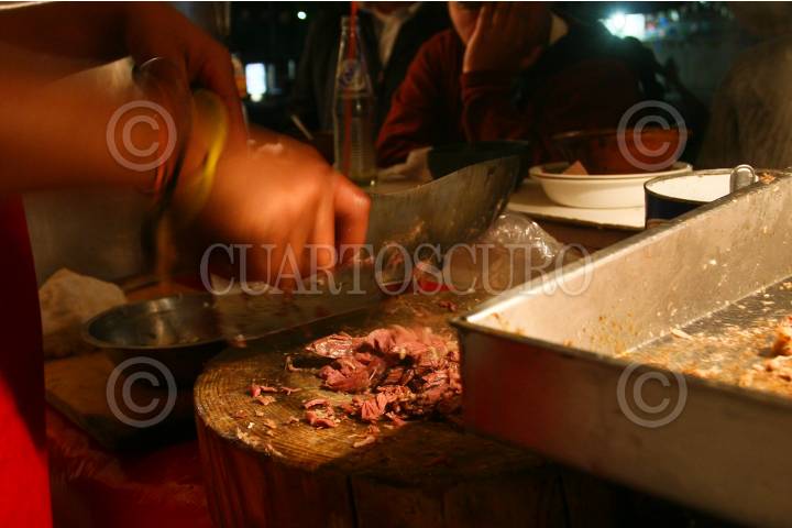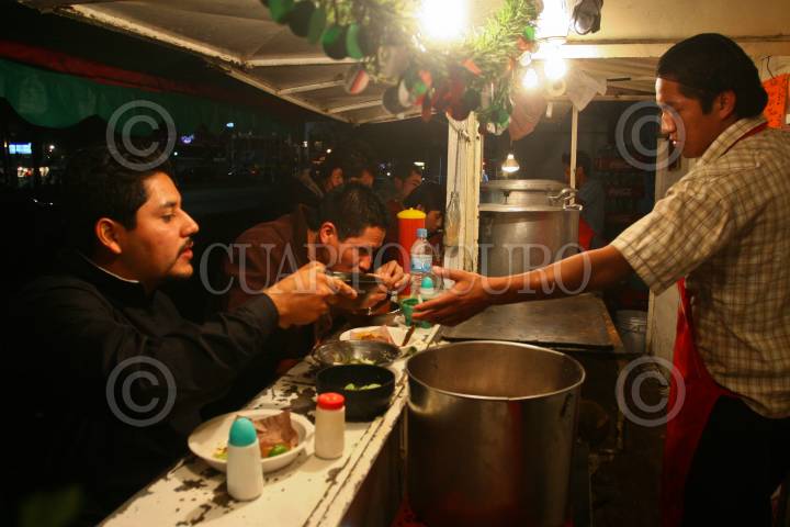 MÉXICO, D.F., 25DICIEMBRE2008.- Luego de Navidad, algunas personas acuden por unos tacos de birria para quitarse la resaca o simplemente para cenar ya que no alcanzó el "recalentado" FOTO: ISAAC ESQUIVEL/CUARTOSCURO.COM