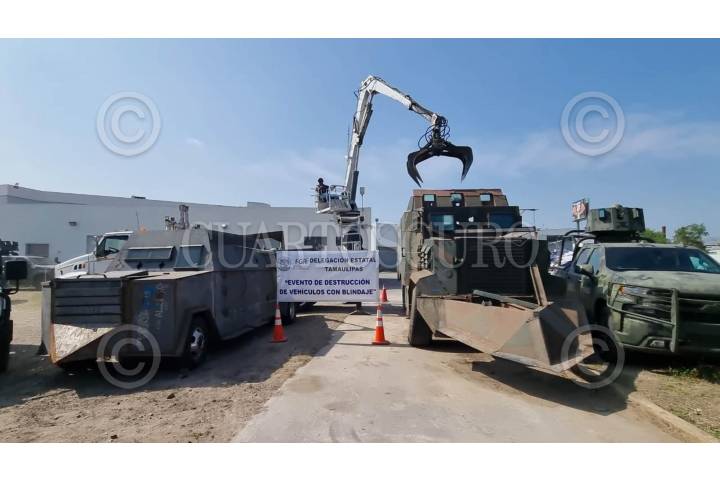 La Fiscalía General de la República destruyó 14 vehículos denominados "monstruos" fueron destruidos debido a que eran utilizados por el crimen organizado.