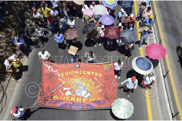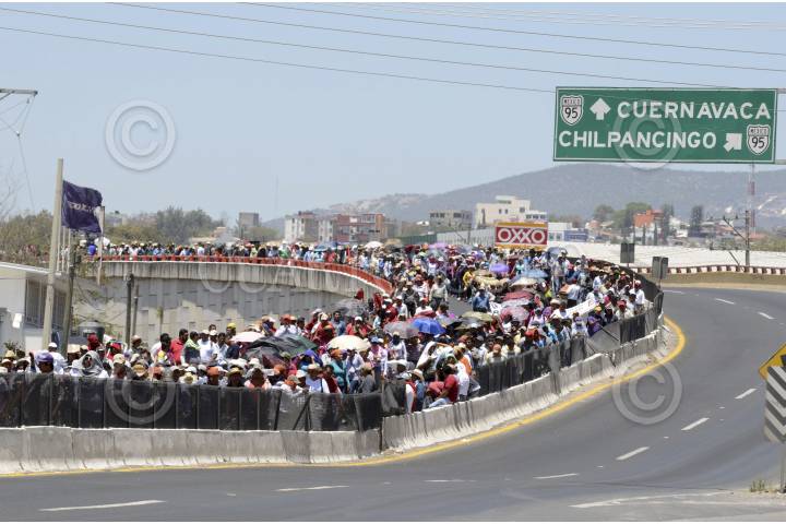 CHILPANCINGO, GUERRERO, 04ABRIL2013.- La mañana de este jueves maestros de la Coordinadora Estatal de Trabajadores de la Educación de Guerrero (CETEG) marcharon por la Autopista del Sol. Con altavoces señalaron que se trata de una movilización dentro de las acciones que realiza la Coordinadora Nacional de Trabajadores de la Educación (CNTE) a nivel nacional. Los maestros iniciaron su marcha frente a las instalaciones de la Coordinadora en Chilpancingo. Cruzaron la lateral y tomaron los dos carriles de la Autopista del Sol para marchar hacia el sur, con dirección a Acapulco. Los vehículos que viajan hacia Acapulco fueron desviados por la lateral y luego por la Avenida del Río Huacapa, que corre paralela a la autopista. Durante la marcha los maestros de la Coordinadora insistieron en criticar al Congreso de Guerrero que rechazó la iniciativa que, en su nombre presentó el Gobierno estatal para modificar la Ley Estatal de Educación. La suspensión indefinida de clases lleva ya 38 días en Guerrero. FOTO: BERNANDINO HERNÁNDEZ /CUARTOSCURO.COM
