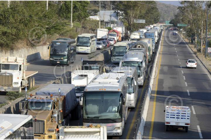 CHILPANCINGO, GUERRERO, 04ABRIL2013.- La mañana de este jueves maestros de la Coordinadora Estatal de Trabajadores de la Educación de Guerrero (CETEG) marcharon por la Autopista del Sol. Con altavoces señalaron que se trata de una movilización dentro de las acciones que realiza la Coordinadora Nacional de Trabajadores de la Educación (CNTE) a nivel nacional. Los maestros iniciaron su marcha frente a las instalaciones de la Coordinadora en Chilpancingo. Cruzaron la lateral y tomaron los dos carriles de la Autopista del Sol para marchar hacia el sur, con dirección a Acapulco. Los vehículos que viajan hacia Acapulco fueron desviados por la lateral y luego por la Avenida del Río Huacapa, que corre paralela a la autopista. Durante la marcha los maestros de la Coordinadora insistieron en criticar al Congreso de Guerrero que rechazó la iniciativa que, en su nombre presentó el Gobierno estatal para modificar la Ley Estatal de Educación. La suspensión indefinida de clases lleva ya 38 días en Guerrero. En la imagen filas de carros y autobuses permanecieron varados por horas en la Autopista del Sol. FOTO: BERNANDINO HERNÁNDEZ /CUARTOSCURO.COM