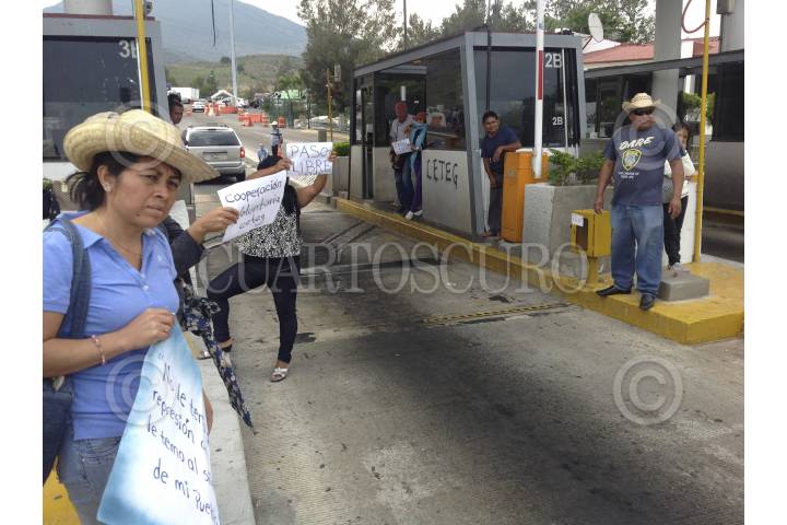CHILPANCINGO, GUERRERO, 21MAYO2014.- Profesores de la Coordinadora Estatal de Trabajadores de la Educación en Guerrero (CETEG) y CNTE tomaron la Caseta de Palo Blanco de la autopista del Sol aproximadamente a las tres de la tarde, dando el paso libe a los automovilistas. FOTO: JOSÉ I. HERNÁNDEZ /CUARTOSCURO.COM