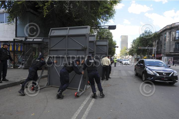 CIUDAD DE MÉXICO, 04AGOSTO2016.- La Policía Federal reabrió la circulación de avenida Bucareli, en la delegación Cuauhtémoc, tras la orden de un juez que dictaminó se garantice el libre tránsito en la Ciudad de México. El ciudadano John Andrew Auping Birch, sacerdote jesuita y quien vive en las inmediaciones de la Secretaría de Gobernación, interpuso una demanda para poder circular sobre esta arteria que constantemente es bloqueada por las manifestaciones que son muy comunes en esta zona. La corporación federal mantenía cerrada esta avenida desde hace meses por cuestiones de seguridad ante las protestas de la CNTE, y precisó que colocará las vallas metálicas cuando sea necesario ante una amenaza de manifestación. FOTO: SEGOB /CUARTOSCURO.COM