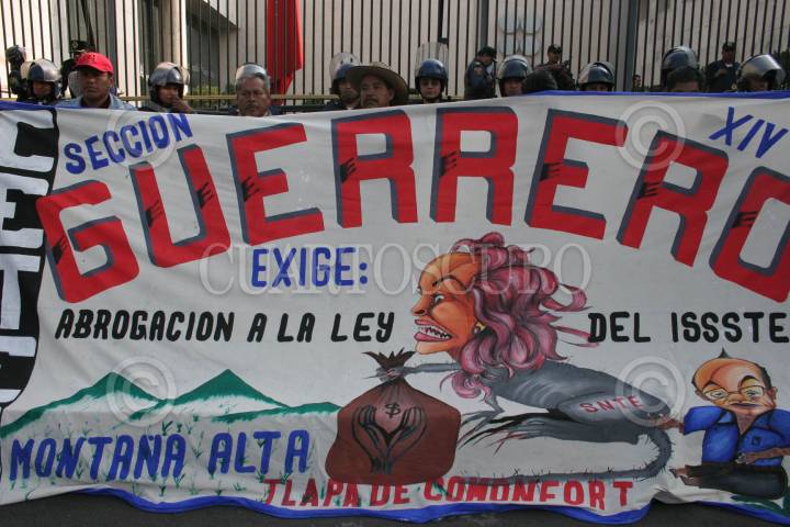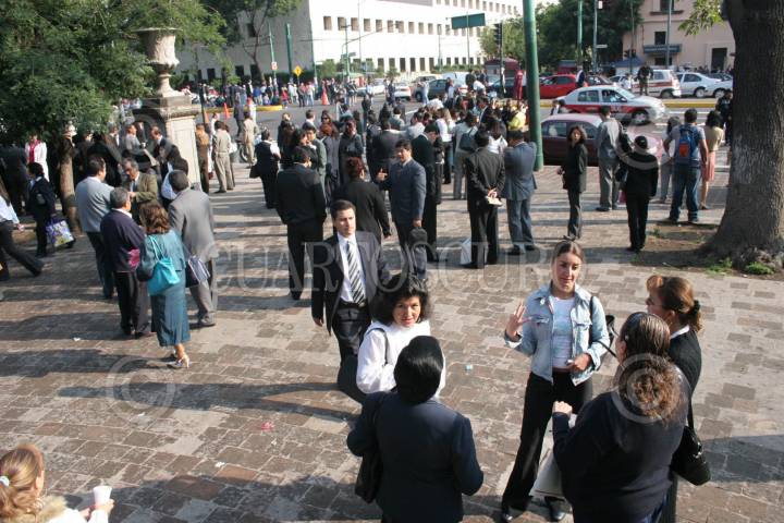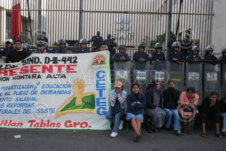 MÉXICO, D.F. 28MAYO2007.- Maestros realizaron un planton por la mañana, bloqueando el acceso a la Secretaría de Hacienda y Crédito Público. Los trabajadores de esta dependencia tuvieron que esperar afuera de las instalaciones debido a la manifestación. FOTO: EZEQUIEL TLAXCALA/ CUARTOSCURO.COM
