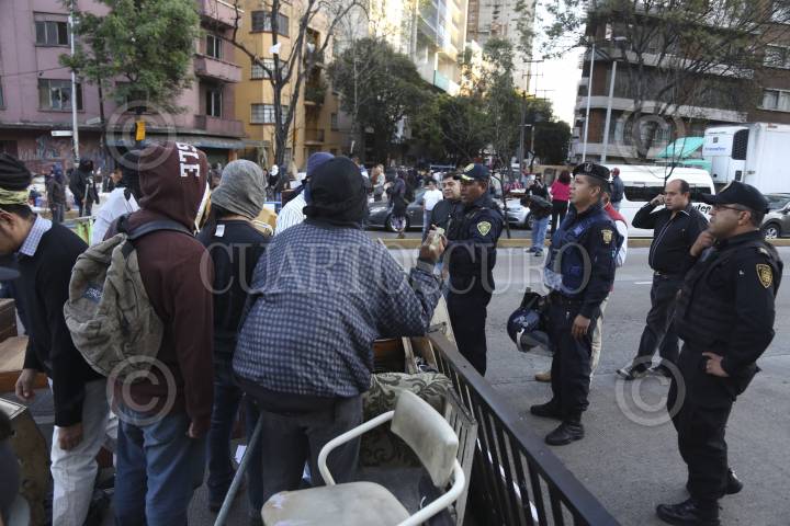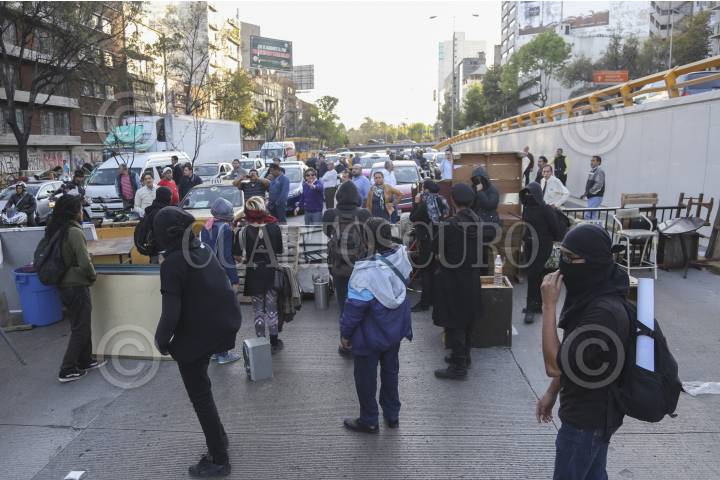 MÉXICO, D.F., 07ENERO2015.- Alrededor de 100 jóvenes encapuchados, bloquearon el circuito interior al cruce con la calle Rio Neva en protesta por el desalojo del predio donde se ubica el centro cultural Chanti Ollin. FOTO: SAÚL LÓPEZ /CUARTOSCURO.COM