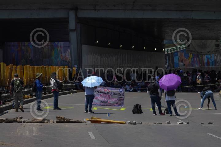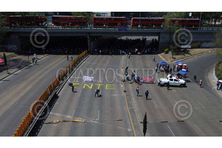 CIUDAD DE MÉXICO 27MAYO2025.- Integrantes de la Coordinadora Nacional de Trabajadores de la Educación (CNTE), realizaron un bloqueo sobre Circuito Interior a la altura de su cruce con Reforma los inconformes, exigen un diálogo con Claudia Sheinbaum, presidenta de México, en atención a sus demandas de la abrogación de la Ley del ISSTE del 2007 y la modificación de las Reformas Educativa y Laboral. FOTO: ROGELIO MORALES CUARTOSCURO.COM