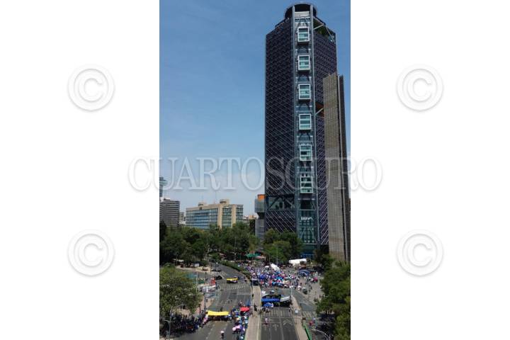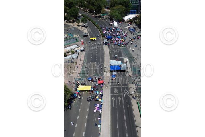 CIUDAD DE MÉXICO 16MAYO2025.- Integrantes de la Coordinadora Nacional de Trabajadores de la Educación, bloquearon diversas vialidades incluyendo Circuito Interior y Paseo de la reforma a la altura de la Estela de Luz, esto en los dos sentidos de ambas arterias. Los inconformes exigen un mesa de diálogo con autoridades de gobierno. FOTO: ROGELIO MORALES CUARTOSCURO.COM