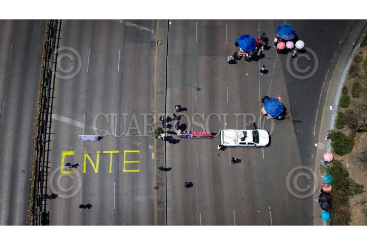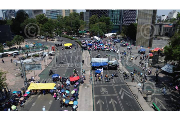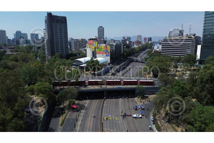 CIUDAD DE MÉXICO 16MAYO2025.- Integrantes de la Coordinadora Nacional de Trabajadores de la Educación, bloquearon diversas vialidades incluyendo Circuito Interior y Paseo de la reforma a la altura de la Estela de Luz, esto en los dos sentidos de ambas arterias. Los inconformes exigen un mesa de diálogo con autoridades de gobierno. En imapeyaspectos aéreos de las vialidades bloquedas. FOTO: ROGELIO MORALES CUARTOSCURO.COM