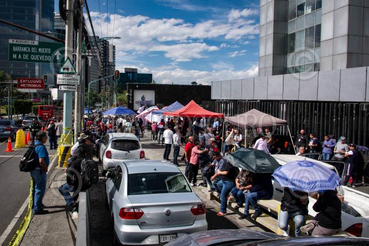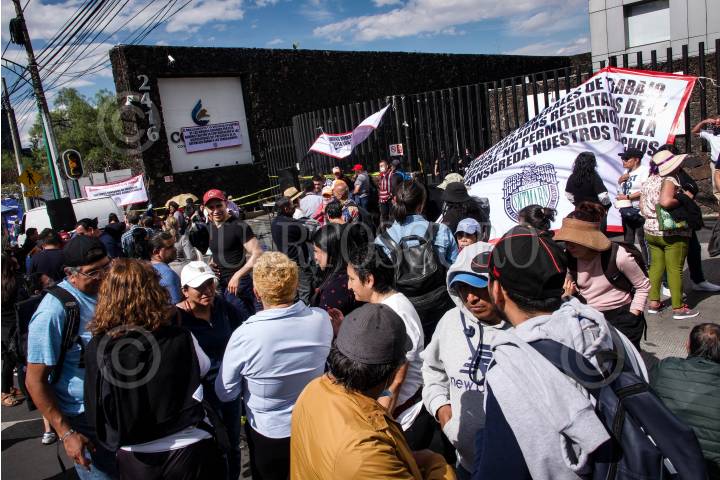 Trabajadores de Semarnat durante protesta a las afueras de Semarnat.