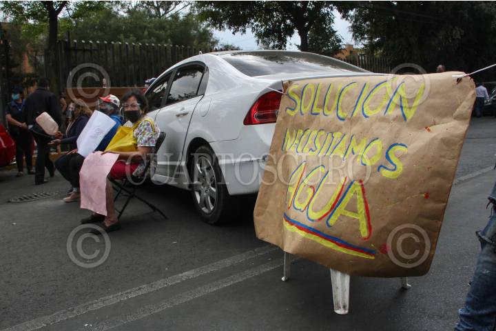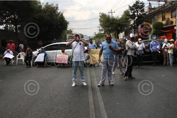 Habitantes de la unidad habitacional Belén mantienen un bloqueo en avenida Camino Real a Toluca por falta de agua.