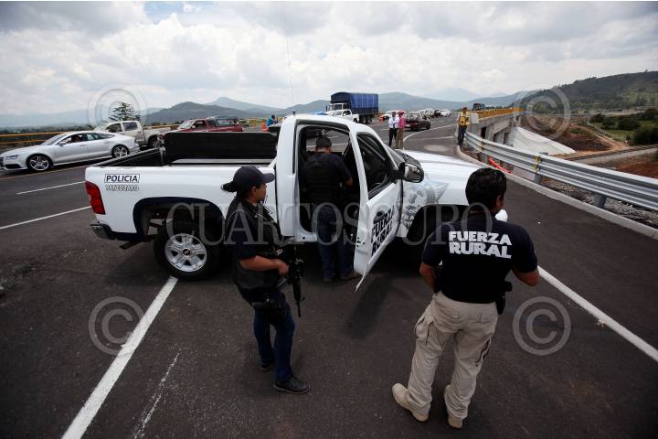 PÁTZCUARO, MICHOACÁN, 03JUNIO2015.- Elementos de la Fuerza Rural de este municipio bloqueron durante el día, exigiendo la liberación de sus compañeros detenidos en Cotija y Ario de Rosales. FOTO: ALAN ORTEGA /CUARTOSCURO.COM