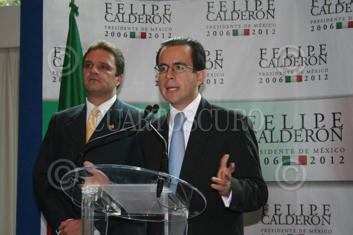 MÈXICO, D.F. 10AGOSTO2006.- Cesar Nava, bocero del comitè ejecutivo del PAN y Josè Espina, secretario general del PAN, afirmaron en conferencia de prensa que apartir de los resultados prematuros de los conteos de votos que se han llevado a cabo en distintas entidades de la repùblica, se puede afirmar que Felipe Calderòn serà el pròximo Presidente de Mèxico. FOTO: Paola Hidalgo/CUARTOSCURO.COM