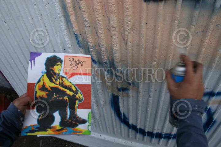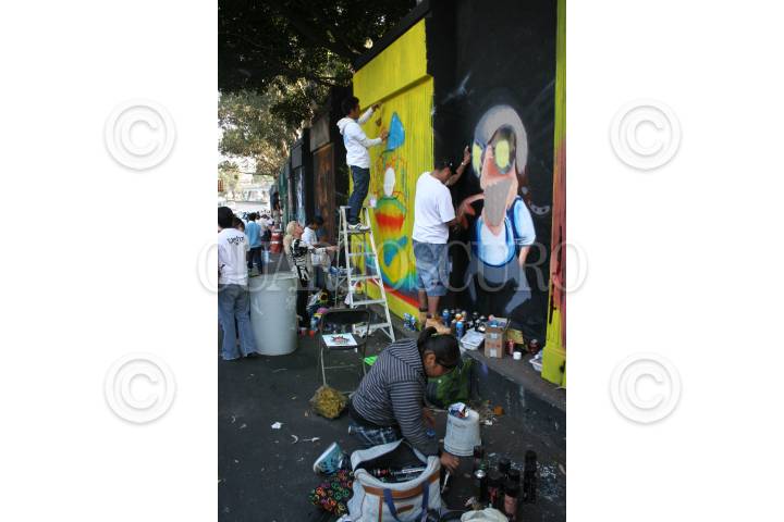 MÉXICO, D.F., 14FEBRERO2009.- Esta tarde cientos de jovenes se dierón cita en el Estadio Azteca para participar en la segunda edición de pintas de gráffiti en las bardas del exterior del estadio que organiza el gobierno del Distrito Federal en conjunto con la secretaría de Seguridad Publica. FOTO: MISAEL VALTIERRA/CUARTOSCURO.COM