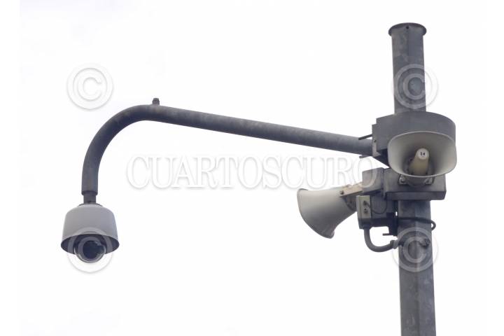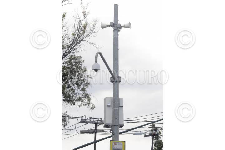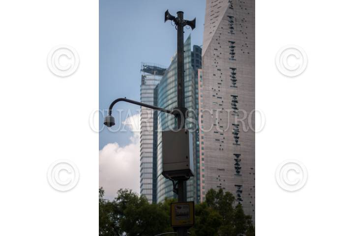 MÉXICO, D.F., 11SEPTIEMBRE2015.- Cámaras y bocinas del C4 que son colocadas en la ciudad de México las cuales están siendo probadas emitiendo el sonido que el día 19 de septiembre alertara el simulacro de sismo, esto para conmemorar el 30 aniversario del terremoto de 1985. FOTO: ARMANDO MONROY /CUARTOSCURO.COM