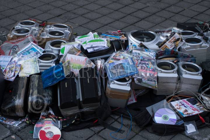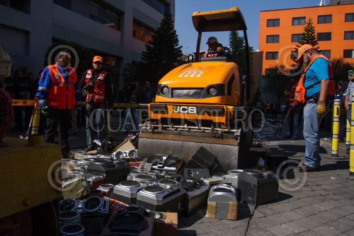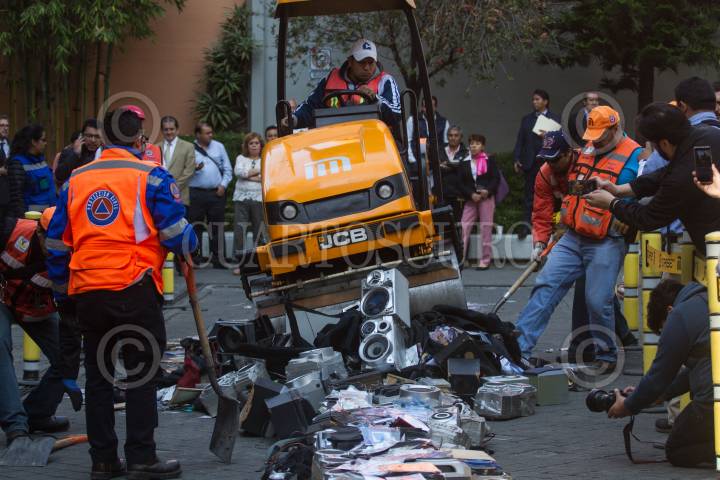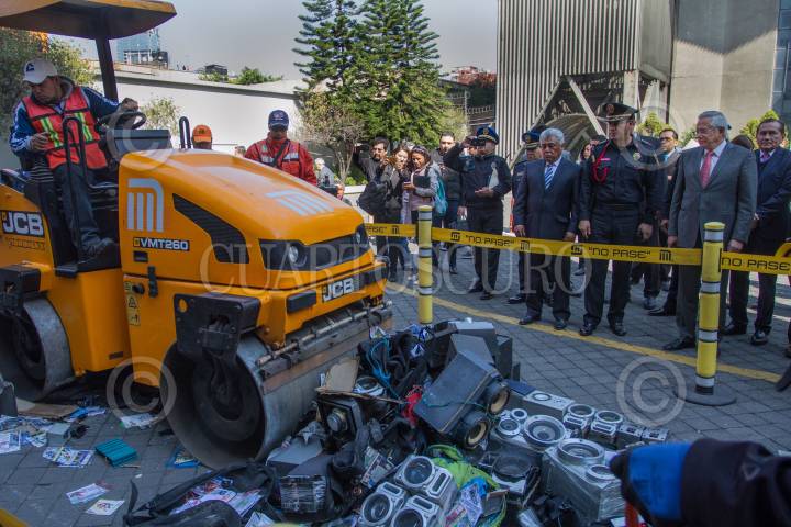 CIUDAD DE MÉXICO, 02FEBRERO2017.- El Sistema de Transporte Colectivo Metro destruyó 162 bocinas decomisadas durante cinco meses a comerciantes ambulantes que ofrecían piratería en los vagones del transporte publico. FOTO: ISAAC ESQUIVEL /CUARTOSCURO.COM