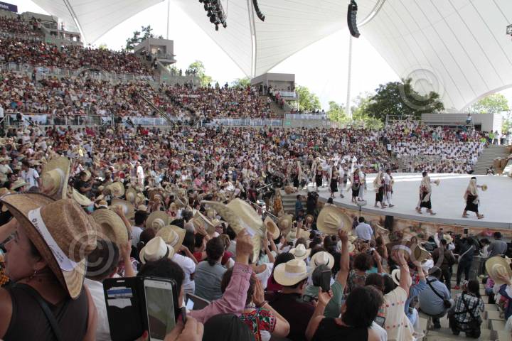 OAXACA, OAXACA., 01AGOSTO2016.- Este primer de agosto se llevó a cabo el segundo lunes del cerro en la ciudad de Oaxaca, donde danzantes de las ocho regiones mostraron parte de sus tradiciones como parte de las fiestas de la Guelaguetza. Pese al boicot realizado por parte de los profesores de la sección 22 de la CNTE, el auditorio lució a un 95 por ciento de su capacidad. FOTO: CAROLINA JIMÉNEZ /CUARTOSCURO.COM