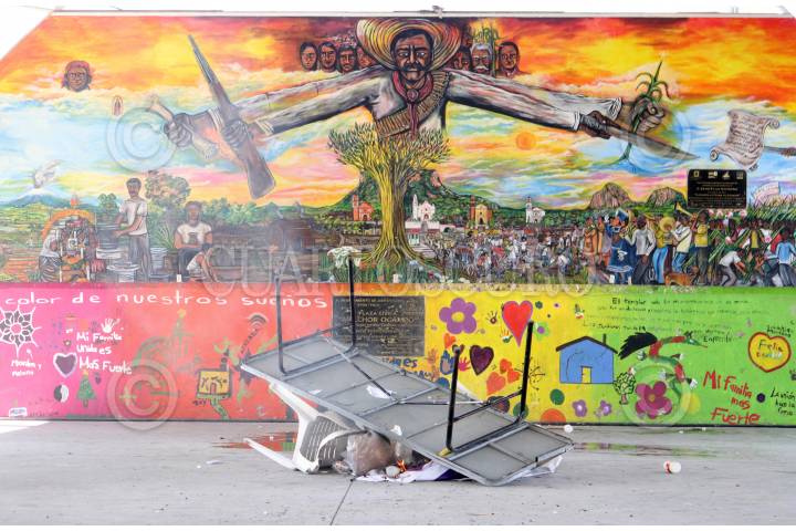 OAXACA, OAXACA, 17JULIO2017.- Profesores de la sección 22 de la CNTE realizan un bloqueo en el cerro del Fortín previo al inicio del primer Lunes del Cerro, lo anterior como parte del boicot a las fiestas de la Guelaguetza 2017, esto debido a que la asamblea estatal determinó que las respuestas del gobierno estatal al pliego de demandas son nulas e insuficientes. FOTO: ARTURO PÉREZ ALFONSO/ CUARTOSCURO.COM