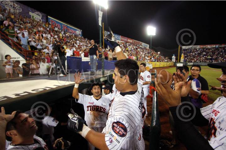 CANCÚN, QUINTANA ROO, 12AGOSTO2009.- En la décima entrada ganan los Tigres de Quintana Roo a los Piratas de Campeche el marcador quedo así 9 carreras a 5 con un último jonrons, siendo campeones de la serie de Play Offs. FOTO: AMARANTA PRIETO/CUARTOSCURO.COM