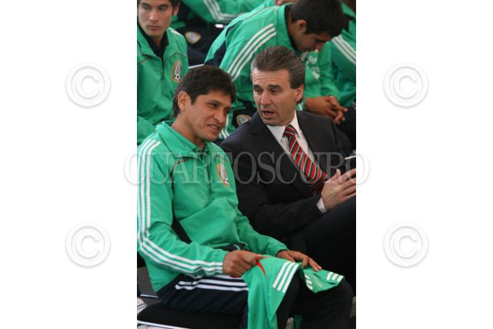 MÉXICO, D.F. 09OCTUBRE2009.- Javier González "China" entrenador de la selección Sub-17 dialoga con Néstor de la Torre Director de la Comisión de Selecciones Nacionales, esto momentos antes de que el mandatario de México, abanderara a la Selección de Mexicana de futbol Sub-17, la cual participara en el próximo mundial en esta categoría que se realizara en Nigeria a partir del 24 de Octubre, esto en las instalaciones de la Residencia Oficial de los Pinos. FOTO: GUILLERMO PEREA / CUARTOSCURO.COM
