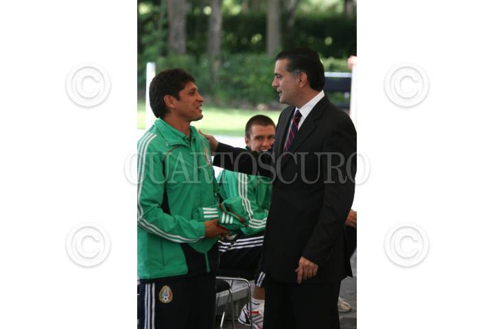 MÉXICO, D.F. 09OCTUBRE2009.- Javier González "China" entrenador de la selección Sub-17 dialoga con José Luis Lujambio titulara de la SEP, esto momentos antes de que el mandatario de México, abanderara a la Selección de Mexicana de futbol Sub-17, la cual participara en el próximo mundial en esta categoría que se realizara en Nigeria a partir del 24 de Octubre, esto en las instalaciones de la Residencia Oficial de los Pinos. FOTO: GUILLERMO PEREA / CUARTOSCURO.COM