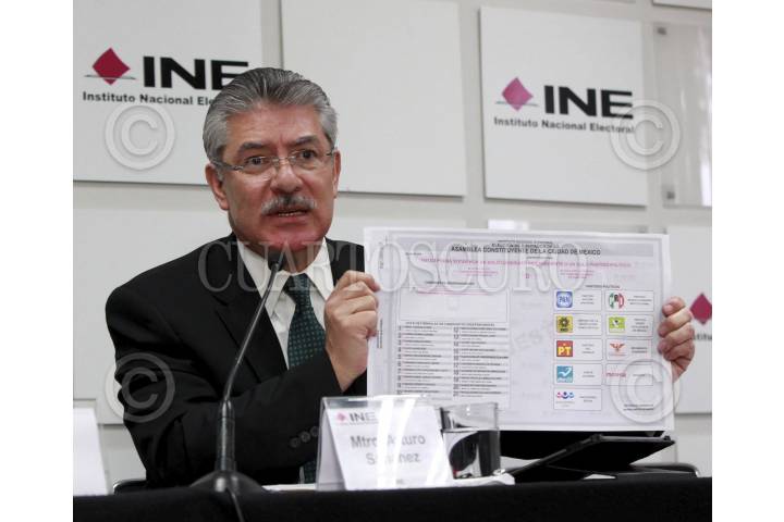 CIUDAD DE MÉXICO, 18MAYO2016.- Lorenzo Córdova Vianello, consejero presidente del INE, muestra la boleta para votación de las Candidatas y los Candidatos a la Asamblea Constituyente. FOTO: CUARTOSCURO.COM